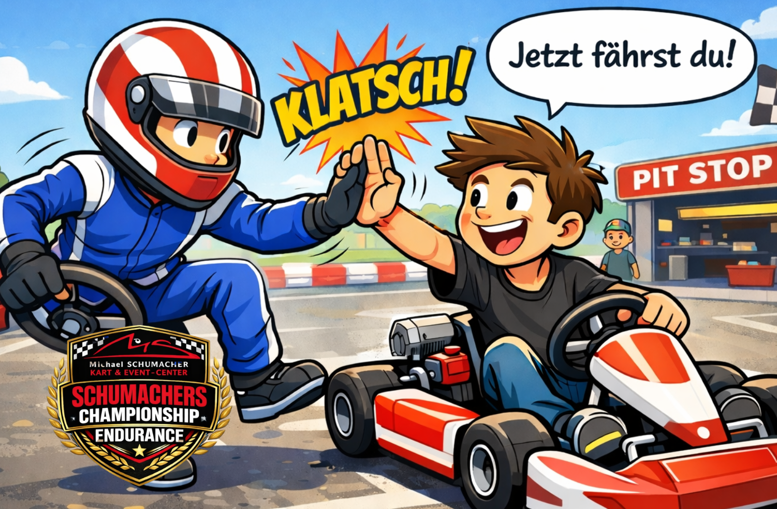 Kinder ab 1,40 m und 8 Jahren und mit den Erwachsenen Kart ab 1,55 m und 12 Jahren.